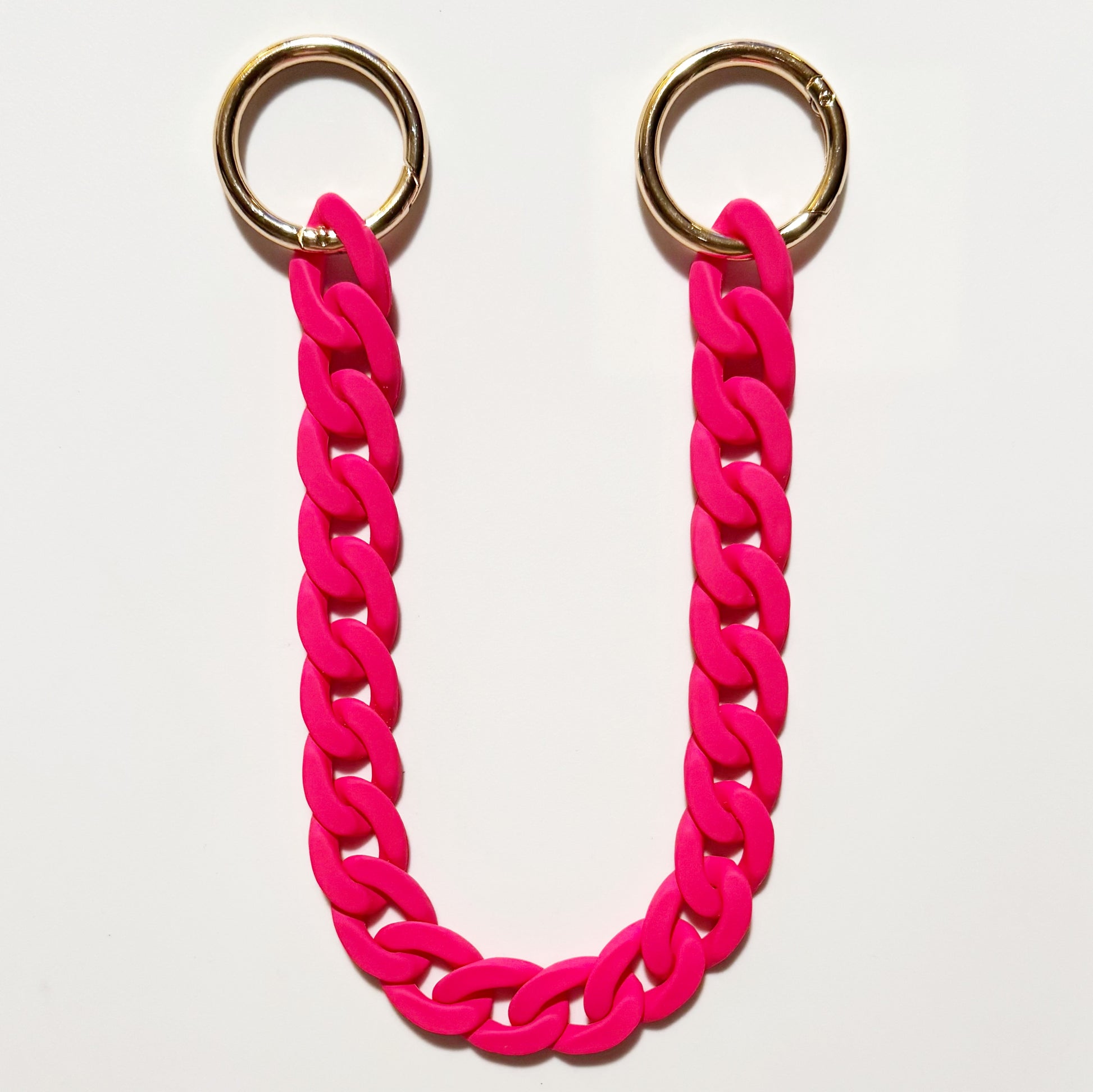 This gorgeous chain was made with square acrylic links and is approximately 16 inches long. If you have a smaller bag, links can be easily removed from the chain.